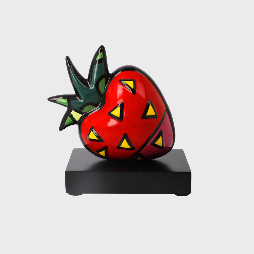 Succombez à une tentation visuelle irrésistible avec cette interprétation magistrale de la fraise par l’artiste Romero Britto. Telle une sculpture précieuse délicatement posée sur son socle, cette œuvre capte instantanément l’attention et devient le point focal de toute décoration intérieure. Ce fruit estival, symbole de douceur et de vitalité, est ici transfiguré en un objet design iconique. À travers le prisme du Pop Art, Britto réinvente la nature avec ses motifs géométriques signatures et ses contrastes vibrants, faisant de cette pièce un incontournable pour ceux qui souhaitent apporter une touche de joie et de modernité à leur espace de vie.