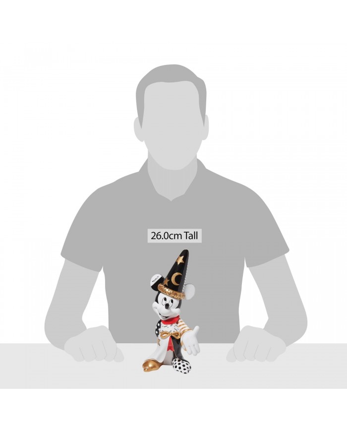 Figurine de Mickey l’apprenti sorcier version Midas, noir, blanc, rouge et doré. Chaque figurine Disney by Britto, décoré dans un style pop art par l’artiste international Roméro Britto, est en résine peinte à la main avec une finition laquée et brillante. Emballé dans une boîte cadeau.
