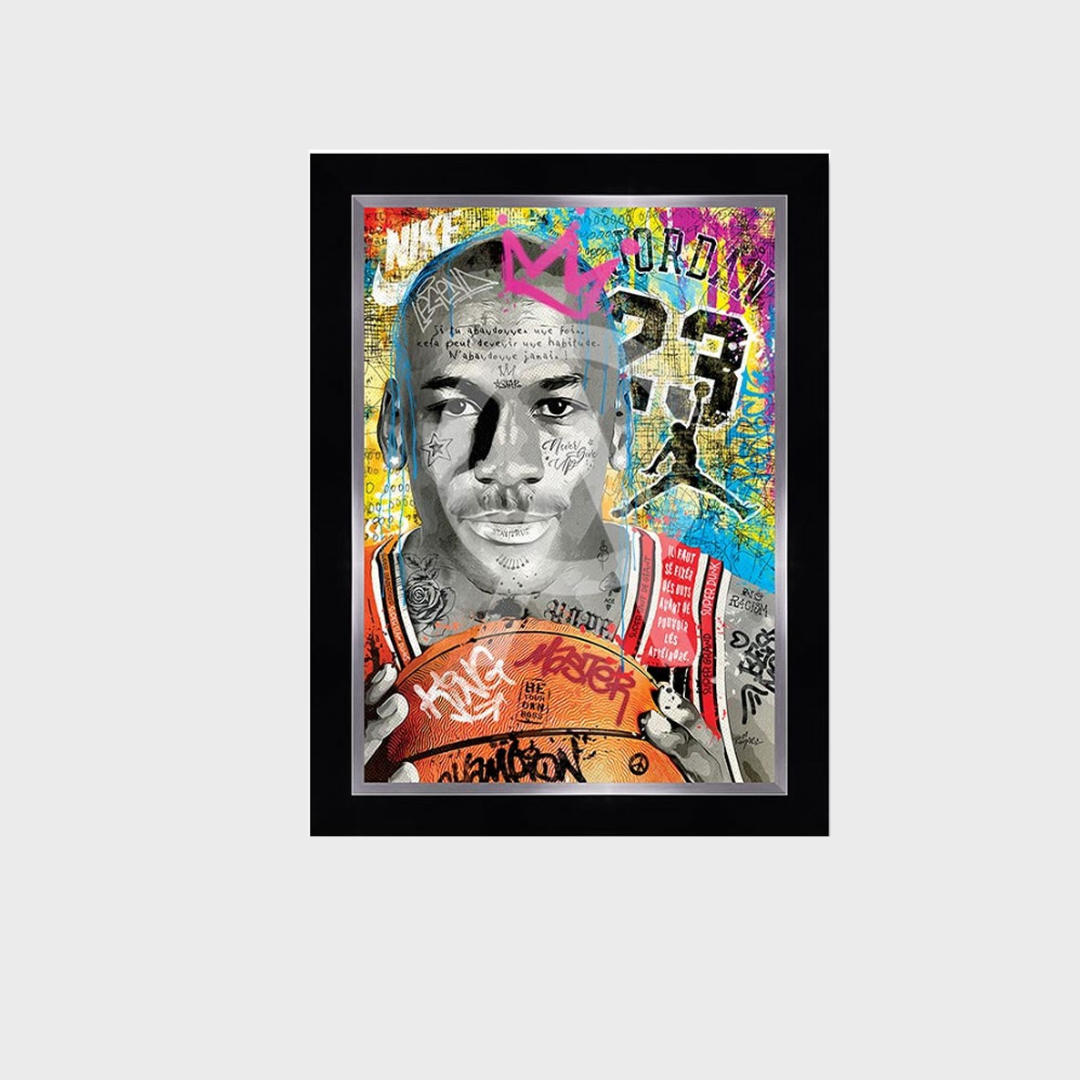 Apportez la légende de « His Airness » dans votre intérieur. Un cadre iconique mêlant puissance, élégance et motivation. Idéal pour les fans de basket et les amateurs de décoration urbaine chic.